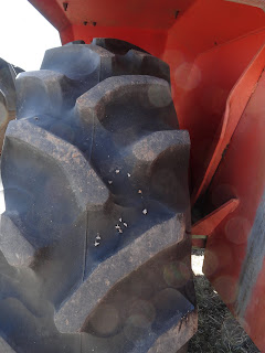 My first official job as a new tractor owner was to remove all the goat heads sticking in the eight tires. Not a crop I want to raise.
